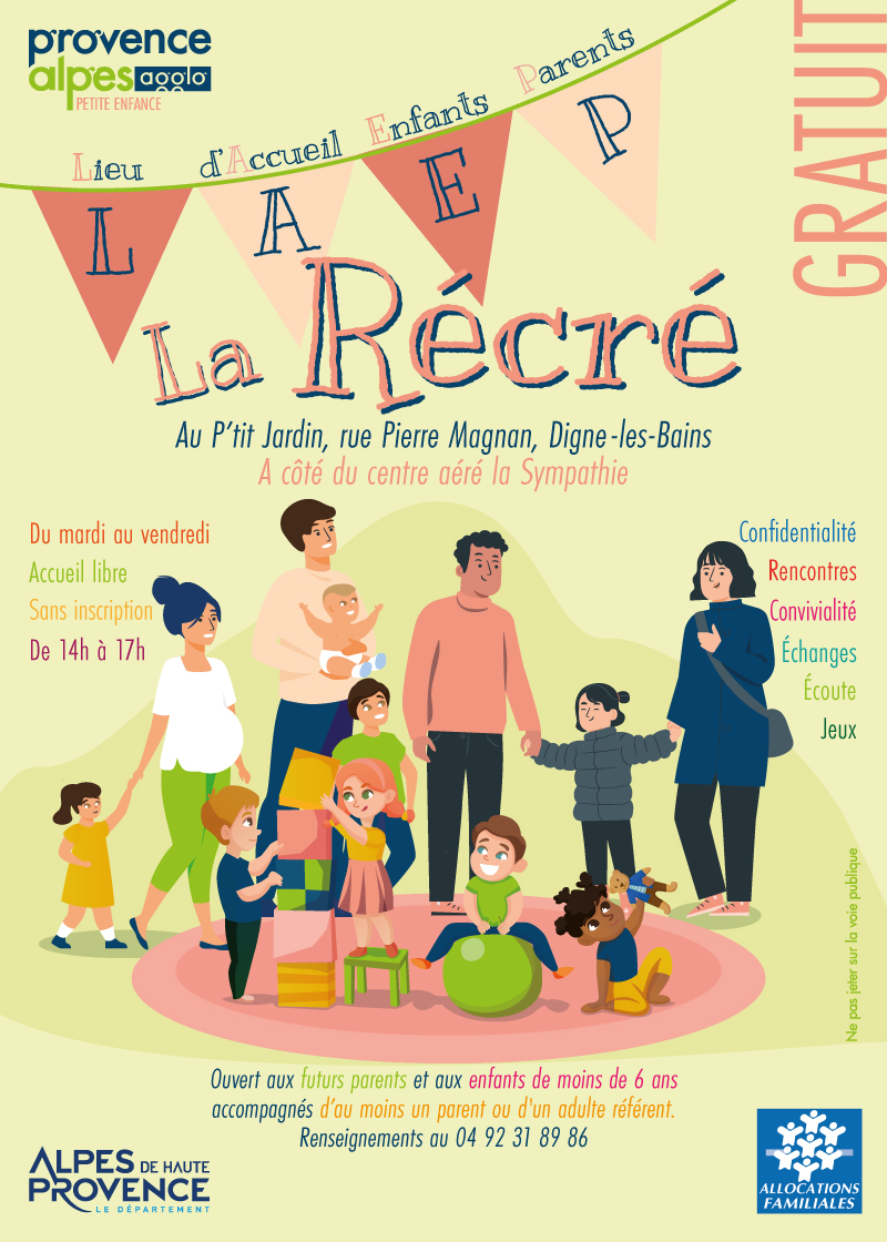 Le lieu d’accueil enfants-parents (LAEP) « La Récré » est ouvert aux familles ou tout autre adulte référent accompagnant un ou plusieurs enfants de moins de 6 ans.